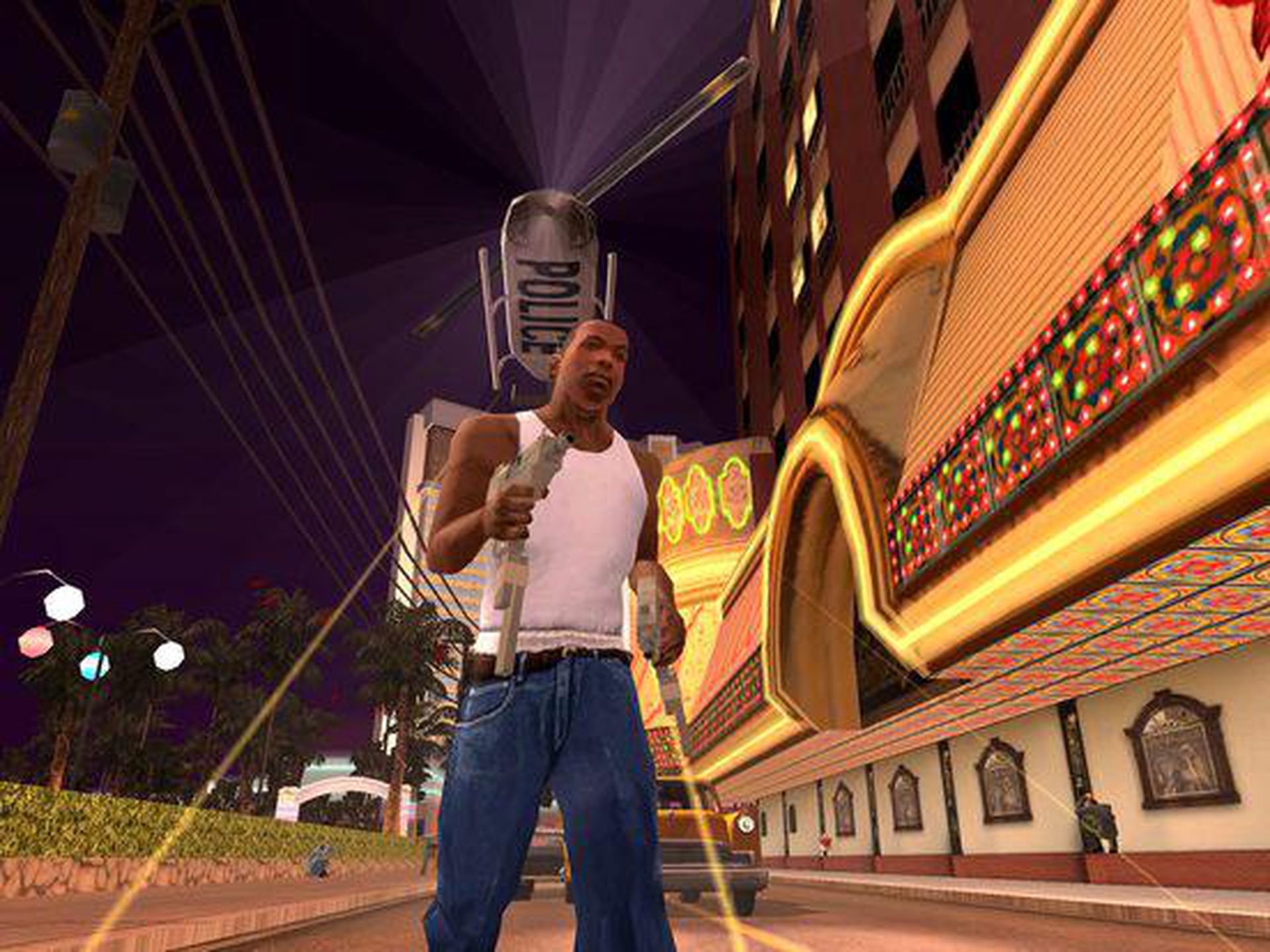 该作是GTA系列的第七部作品、第三部3D游戏。该作的故事设定在20世纪90年代美国的圣安地列斯州,游戏主角卡尔·约翰逊在得悉母亲被杀死的消息后,回到位于洛圣都的老家,渐渐解开 省略 . . .